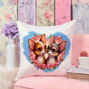 Entdecken Sie das perfekte Wohnaccessoire für jede Jahreszeit und verleihen Sie Ihrem Wohnraum eine verspielte Note mit unseren einzigartigen Kissen im Format 40×40 cm, die mit zwei entzückenden Chihuahua-Motiven geschmückt sind! Auf jedem Kissen sehen Sie zwei Chihuahuas, die sich liebevoll küssen – eine perfekte Ergänzung für jeden Hundefan und eine charmante Dekoration für Ihr Zuhause.