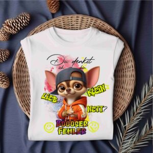 „Zeigen Sie Ihre entschiedene Haltung mit unserem exklusiven T-Shirt, das den unverwechselbaren Spruch ‚Nö… Einfach Nö!‘ und einen niedlichen Chihuahua zeigt. Dieses Shirt ist perfekt für alle, die ihre ablehnende Haltung mit Stil und Humor ausdrücken möchten. Mit hochwertiger Baumwolle gefertigt, bietet es nicht nur Komfort, sondern auch einen einzigartigen Look. Holen Sie sich noch heute Ihr ‚Nö… Einfach Nö!‘ T-Shirt und lassen Sie Ihre Einstellung sprechen!“