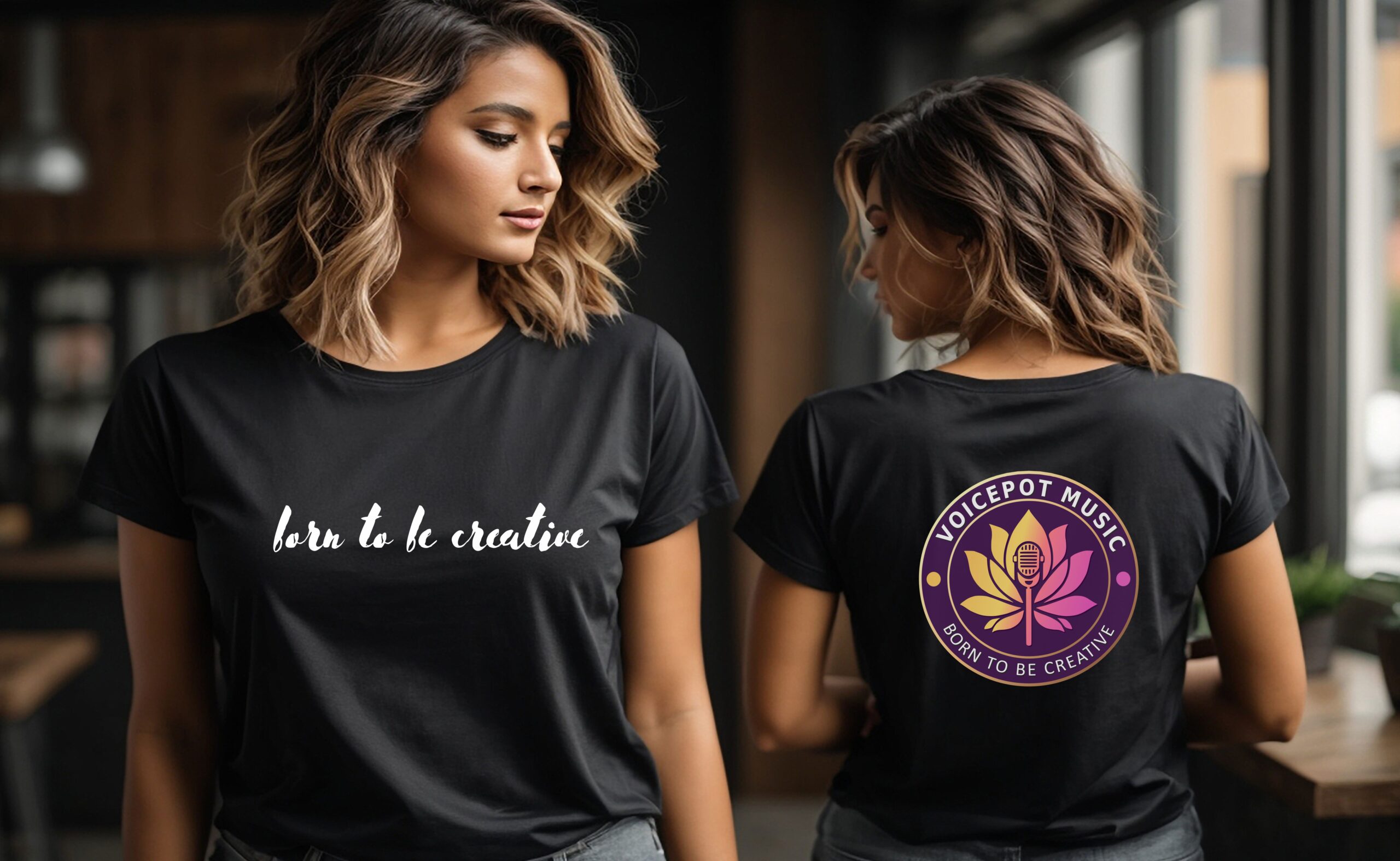 Die Brust wird von dem Slogan BORN TO BE CREATIVE gezeichnet. Ideal für alle Musiker, Sänger und Kreative, die ihre Liebe zur Musik zeigen möchten
